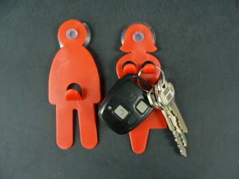 面白いデザインのキーフック男女ペア2個入り! 吸盤が付いておりますので、金属などのドアやガラス窓、 冷蔵庫、車の中などに設置してご利用頂けます。