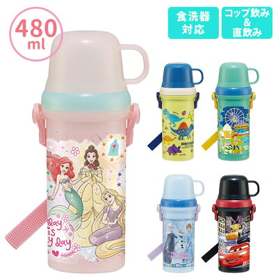 直飲み コップ付 プラ水筒 480ml SKATER スケーター 好評 子供用 キッズ こども 直飲み コップ付 キャラクターグッズ トイストーリー ミニオンズ プリンセス プラレール ソフィア カーズ ショルダーベルト付 2Way 保育園 幼稚園 園児 幼児 遠足 ピクニック 入園 入学