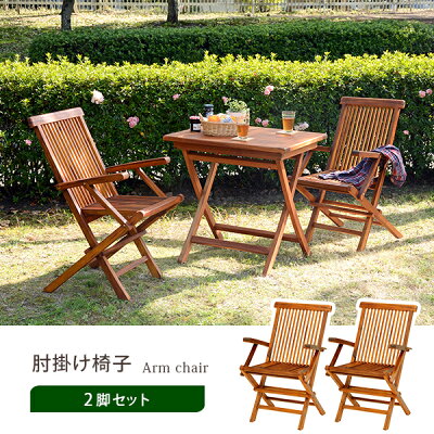 送料無料 ガーデンアームチェア【2個セット】 肘掛け椅子 椅子のみ ガーデンファニチャー 天然木 木製 椅子 ガーデンチェア シンプル【RC-1591TK】