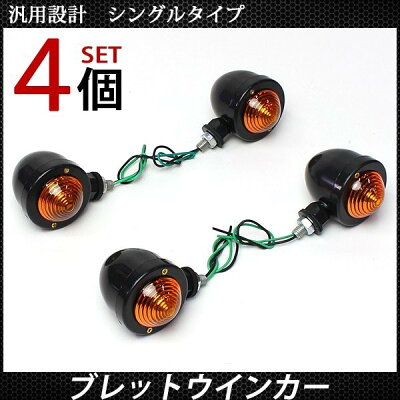 バイク用 砲弾型 ブレットウインカー ウインカー 4個セット バルブ付き 汎用 ブラック バレット ウインカー カスタム パーツ 旧車